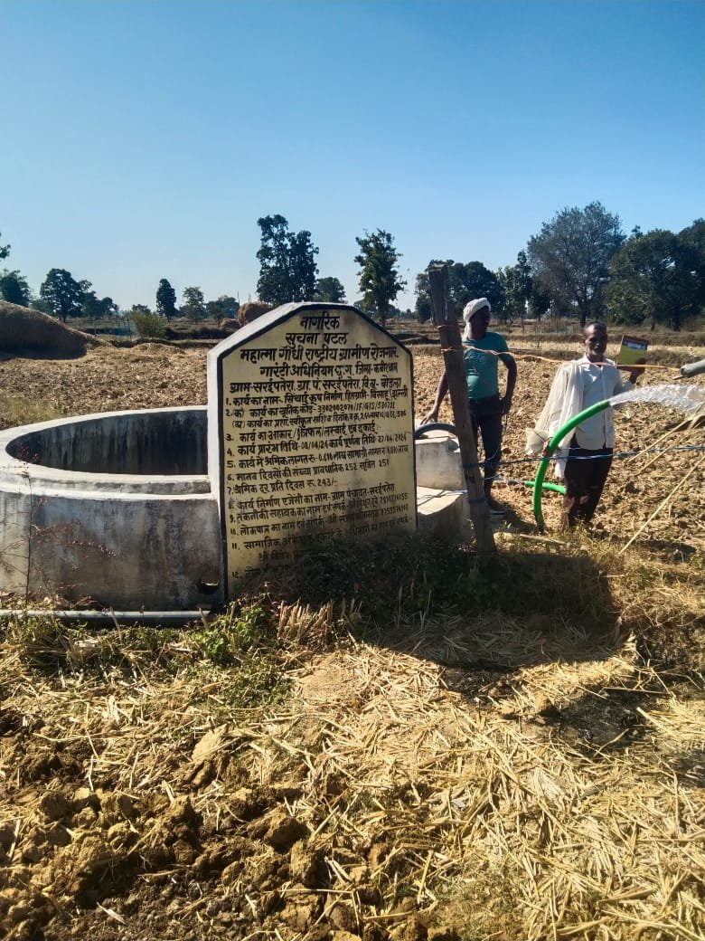 कवर्धा विकासखण्ड बोड़ला के वनांचल ग्राम पंचायत सरईपतेरा की जहां खेतीहर कृषको की संख्या अधिक है। यह कहानी है कृषक श्री बिसाहु सहरिया की जिन्हें महात्मा गांधी राष्ट्रीय ग्रामीण रोजगार गारंटी योजना से सिंचाई कूप (डगवेल) की स्वीकृति मिली है। हितग्राही श्री बिसाहु सहरिया पहले अपने खेतो में सिंचाई के लिए बरसात के पानी पर निर्भर रहते थे, लेकिन अब सिंचाई कूप निर्माण होने से कोई भी मौसम में अपने खेतो की सिंचाई कर सकते है। कृषि के लिए सबसे महत्वपूर्ण है खेतो में सिंचाई का साधन जो महात्मा गांधी नरेगा योजना से इसकी पूर्ति हो रहा है। कृषक कार्य के लिए महत्वपूर्ण है सिंचाई का साधन होना लेकिन इसके अभाव में हितग्राही श्री बिसाहु सहरिया पहले बारहमासी फसल लेने में असमर्थ थे। पहले केवल बरसात के पानी के भरोसे खेती करते थे और बारिश पर निर्भरता के कारण फसल उत्पादन में अनिश्चितता बनी रहती थी। हितग्राही के पास केवल 2.10 एकड़ जमीन है जिसमें सीमित खेती ही हो पाती थी। सिंचाई के अभाव में फसले नष्ट हो जाने से हितग्राही को आर्थिक नुकसान भी उठाना पड़ता था।